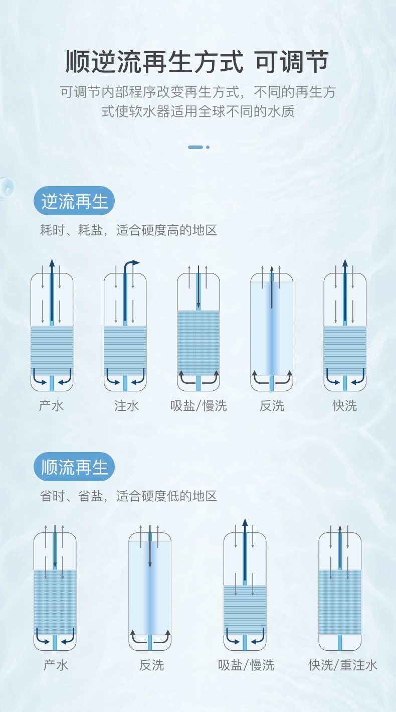 ·順逆流再生方式可通過程序調節